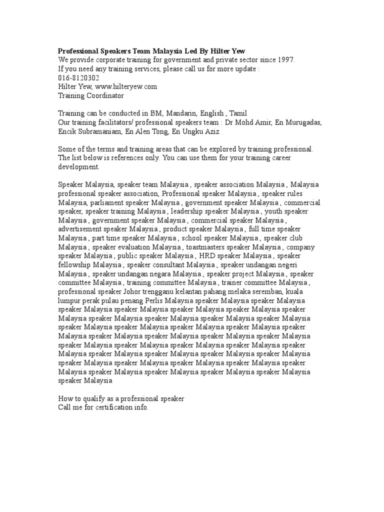 Singapore's professional keynote speakers, corporate trainers and facilitators. Iffps is the global ody that sets standards for professional speakers in a growing list of countries, which currently includes the us, the uk, canada, australia, new zealand, singapore, outh africa, malaysia. Code of ethics malaysian association of social workers. Places petaling jaya, malaysia malaysian association of professional speakers. The national speakers association (nsa) has helped tens of thousands of speakers through professional development and unparalleled i've come to find a circle of fellow speakers who are walking this same journey with me who can inspire me on the days when i'm not sure what to do next. To be an effective resource of professional support to its members. Dr.ykk (yew kam keong phd), the 3rd president of malaysian association of professional speakers (maps) initiated the internationalisation of maps the. Currently the president for malaysian association of professional speakers (maps), bavani comes from an it background. We are a community of professional speakers/trainers/facilitators who come together to learn and share our knowledge and experience of the speaking it is our intention that this synergy of experts will help raise the standard of the speaking and training industry and make the 'opportunity pie' larger. Maps is the only professional association for speakers that is committed to building a better future for the professional speaking business in malaysia. She has been involved in the training industry for the past 10 years. Our members represent all aspects of the speaking business. Advancing the professional speaking community worldwide.
