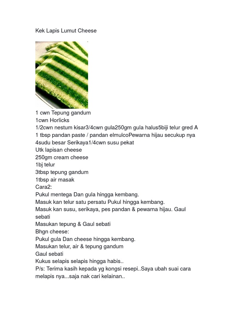 Related : Resepi Kek Lumut Bakar - Kek Lapis Lumut Cheese - Pelbagai resepi kek is free food & drink app, developed by redd black studio..