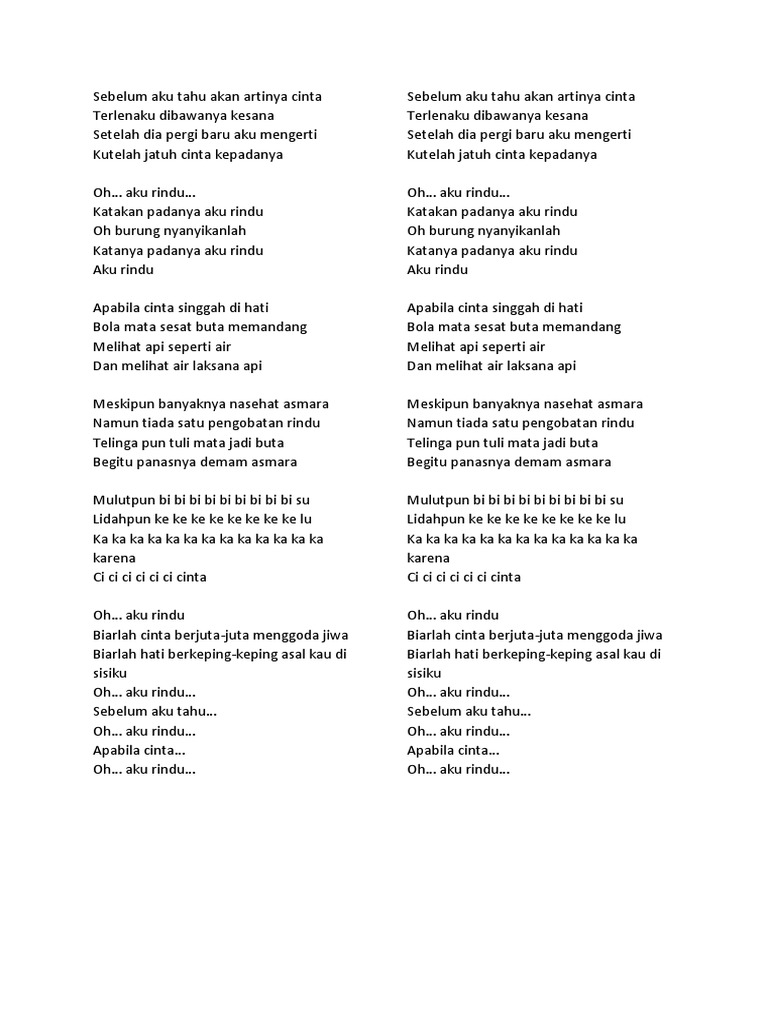 Selengkapnya, simak lirik lagu lon rindu atau lirik lagu meurindu dan chord gitar di bawah ini. Lagu celengan rindu mengisahkan tentang curahan hati seseorang yang harus menjalani hubungan jarak jauh dengan pasangannya. Download lagu ini rindu mp3 tidak ada di halaman ini. Lagu ruang rindu merupakan salah satu single dari 10 lagu di dalam album pertama letto yang bertajuk truth, cry and lie. Ayah kandung alyssa diketahui sudah meninggal lantaran sakit.
