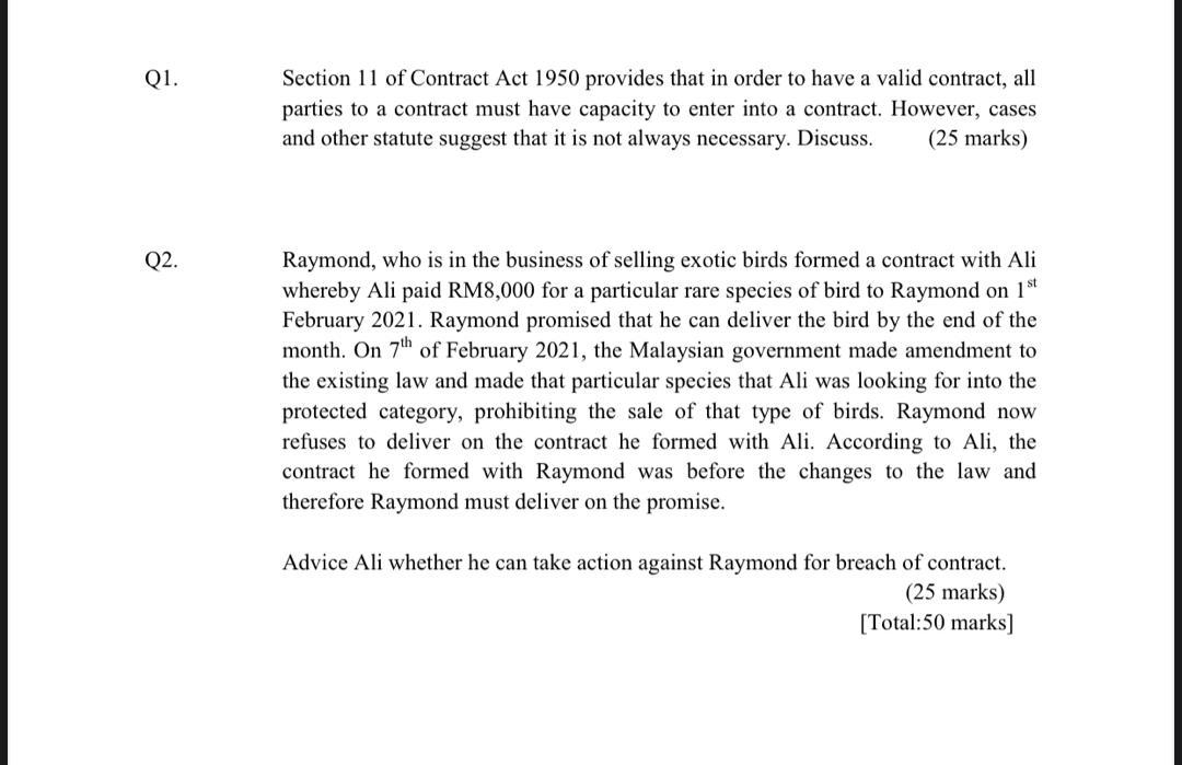 Notes On Business Law Notes from www.myprivatetutor.ae In effect of section 10 and 11 of contract act 1950, the courts held in the cases of mohori bibee v dharmodas ghose (1903), tan hee juan v teh boon kiat (1934) and government of malaysia v gurcharan singh (1971) that all such agreements are void. The contract act of 1950 was enacted in malaysia. What agreements are contracts who are competent to contract. Legal capacity section 11 of contracts act 1950 an individual is competent to enter contract, according to the law, who is of the age of. Under the malaysian contracts act 1950, there are three types of contract defined under section 2 of the act. (afrikaans text signed by the officer administering the government.)(assented to 22nd june, 1950.) (2) it extends to the whole of india. What is a sound mind for the purposes of contracting.